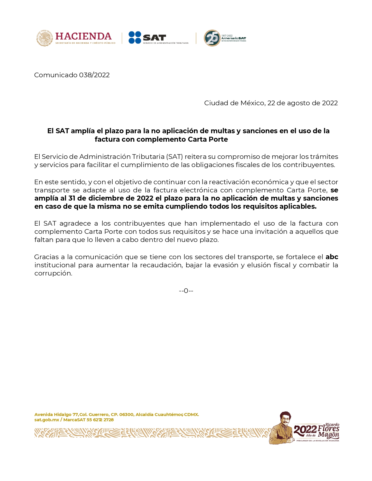 Te compartimos el documento oficial que compartió el SAT hace unos momentos: